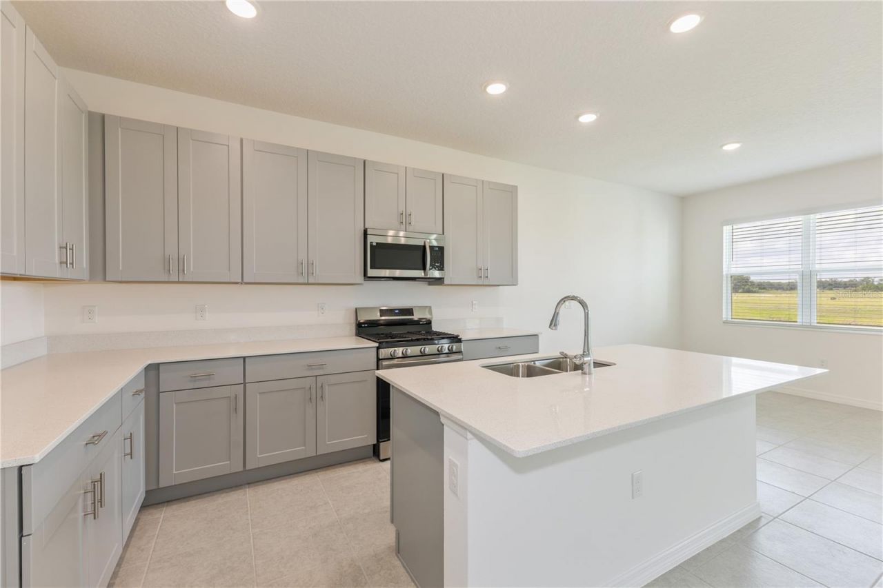 Imagine yourself in this 4 bedroom 3 bathroom home that provides plenty of space and comfort for your family. This open-concept floorplan features 17 x 17 ceramic tile that flows throughout all living areas. This home provides 9'4 ceilings, letting in the natural Florida light. The kitchen features ample cabinetry with 42 upper cabinets for extra storage, a spacious island with quartz countertops and stainless steel appliances. Every home comes with blinds on the windows and a SMART home technology package. Imagine the possibilities and make your family's dreams come true.