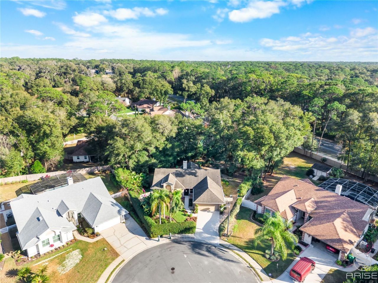 One or more photo(s) has been virtually staged. Nestled amidst the trees with ultimate seclusion on a quiet CUL-DE-SAC sweetly tucked away within the prestigious Bent Oaks community, this meticulously maintained BLOCK home with stucco BRICK and CONCRETE SIDING accents offers a rare blend of architectural integrity, UPDATED modern luxury, and charming CHARACTER on a hard to find 0.42-acre FULLY FENCED PARCEL!!!Soaring VAULTED CEILINGS and an intuitive OPEN FLOW define the home's THREE VERSATILE LIVING SPACES that can be strategically interchanged for best use. Presently, the SPACIOUS formal dining offers a flexible footprint that transitions seamlessly into a quiet secondary seating area which serves well for a media room, formal living or even a HOME OFFICE. In the heart of the home, the great room, the focus becomes a WOOD-BURNING FIREPLACE, elegantly framed by CUSTOM BUILT BOOKCASES with hardwood and glass shelving that is beautifully lit.Sliding glass doors expand from there into a NEWER CLIMATE CONTROLLED FLORIDA ROOM. Surrounded by FOUR ADDITIONAL SETS OF SLIDING GLASS DOORS, this nature-drenched sanctuary blurs the lines between indoors and out with each door opening directly onto a ELEVATED WOOD DECK. From this vantage point and from almost every window in the home, the VIEWS ARE PRIVATE, overlooking the lush Florida fauna.The FULLY RENOVATED KITCHEN centers around a substantial KITCHEN ISLAND that commands attention with its gleaming white base topped in charcoal QUARTZ, offering both a functional workspace and an aesthetic anchor with its striking contrast of colors. Bringing everything together with pleasing symmetry, an expansive GRANITE COUNTERTOP is paired with GRAY CABINETRY and a delightful TILE BACKSPLASH. STAINLESS STEEL APPLIANCES integrate seamlessly into the layout, while a cozy BREAKFAST NOOK is perfectly situated between TWIN WINDOWS, offering private views of the front lawn that is fully screened from the street by mature hedging. A CLOSET PANTRY and closet laundry with BUILT-IN CABINETRY complement and complete the full culinary experience. The home features a true SPLIT-BEDROOM FLOOR PLAN for maximum individual respite. To the right, the RENOVATED PRIMARY SUITE and ENSUITE boasts an elongated 8' DUAL SINK GRANITE VANITY, a FRAMELESS-GLASS WALK-IN SHOWER, a HEATED, JETTED, JACUZZI WHIRLPOOL SPA TUB, and a WALK-IN CLOSET. Two additional bedrooms occupy the opposite side of the home, each with LARGE PICTURESQUE WINDOWS framing the outdoor views and each with access to a RENOVATED GUEST BATH.The rear yard is a HUGE wooded retreat - a mature canopy providing natural shade for LOW-MAINTENANCE LANDSCAPING and native plantings with both DOUBLE-GATE and SINGLE-GATE access. Additional special mentions include: NEW HOME PLUMBING REPIPE (2025)!!! NEW SOLID PANEL INTERIOR DOORS (2025)!!! NEW HOT WATER HEATER (2024)!!! LARGE FORMAT 6 GUTTERS with LEAF GUARDS (2024)!!! PELLA LOW-E INSULATED WINDOWS that are FULLY TRIMMED (2016)!!! NEW HVAC (2016)!!! NEW ROOF (2014)!!!This gem is located just 5 minutes from I-4 and award-winning downtown Deland & Stetson University, 30 minutes from Daytona Beach International Airport with direct flights to NYC and other major cities, 40 minutes to Florida's famous beaches, and an hour to Orlando attractions.