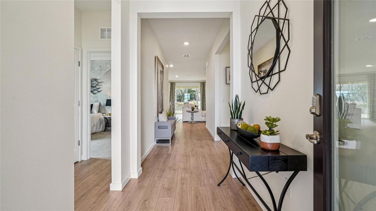 Under Construction. Experience the epitome of modern living in this four-bedroom open concept, all concrete block constructed home. The expansive layout seamlessly integrates the living, dining and kitchen areas, creating a spacious and interconnected environment. With four well-appointed bedrooms, this home offers versatility and ample space for family or guests. The primary bedroom features an ensuite bathroom and walk-in closet. This home comes complete with a smart home package, 'Home is Connected. Welcome home to a new standard of living. This home includes a stainless-steel electric range, microwave, and built-in dishwasher. Pictures, photographs, colors, features, and sizes are for illustration purposes only and will vary from the homes as built. Home and community information including pricing, included features, terms, availability and amenities are subject to change and prior sale at any time without notice or obligation. CRC057592.